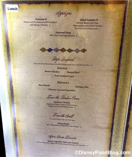 Here’s a look at the current lunch menu at Sanaa.