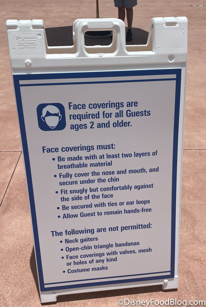 An overhead announcement reminding guests about face mask protocols is played periodically throughout Disney World. The most recent message includes the policy that guests can only remove masks unless they are in a relaxation zone or when eating and drinking while stationary. We heard a brand new message which stated that guests cannot remove their masks while taking photos.
