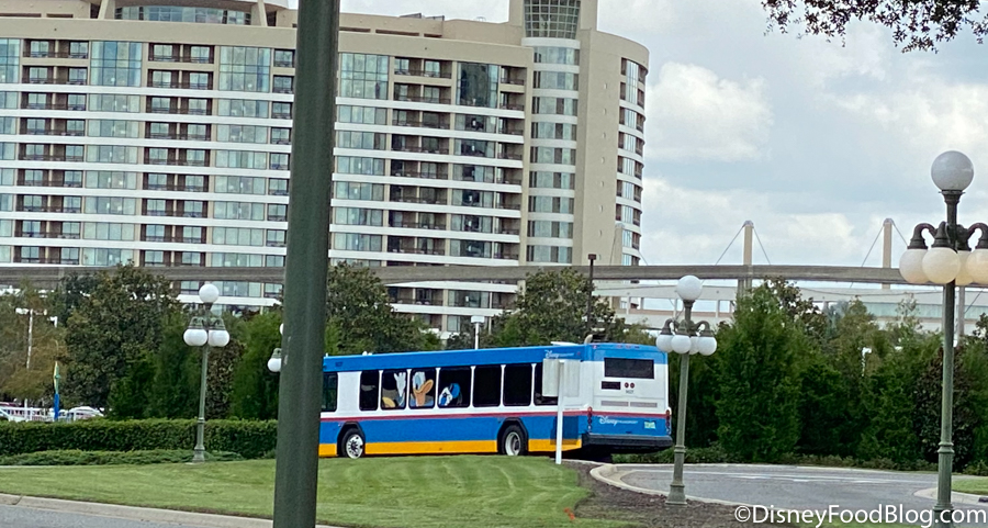 We were waiting for our bus to arrive at the Magic Kingdom when spotted a familiar face in the distance! Yes, that’s the one and only Donald Duck happily waving at us from the window. Much like the Minnie Mouse bus, Donald looks like he’s peeking at us from inside the bus.