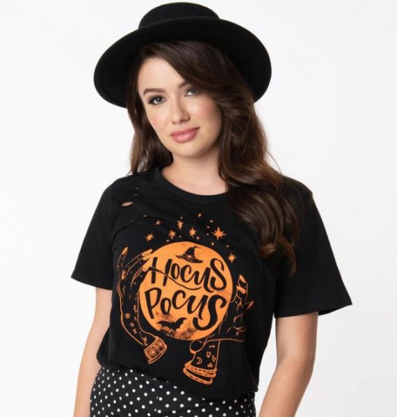 We still cannot get enough Hocus Pocus merchandise so we are over the moon about this new Black & Orange Hocus Pocus Distressed Tee!