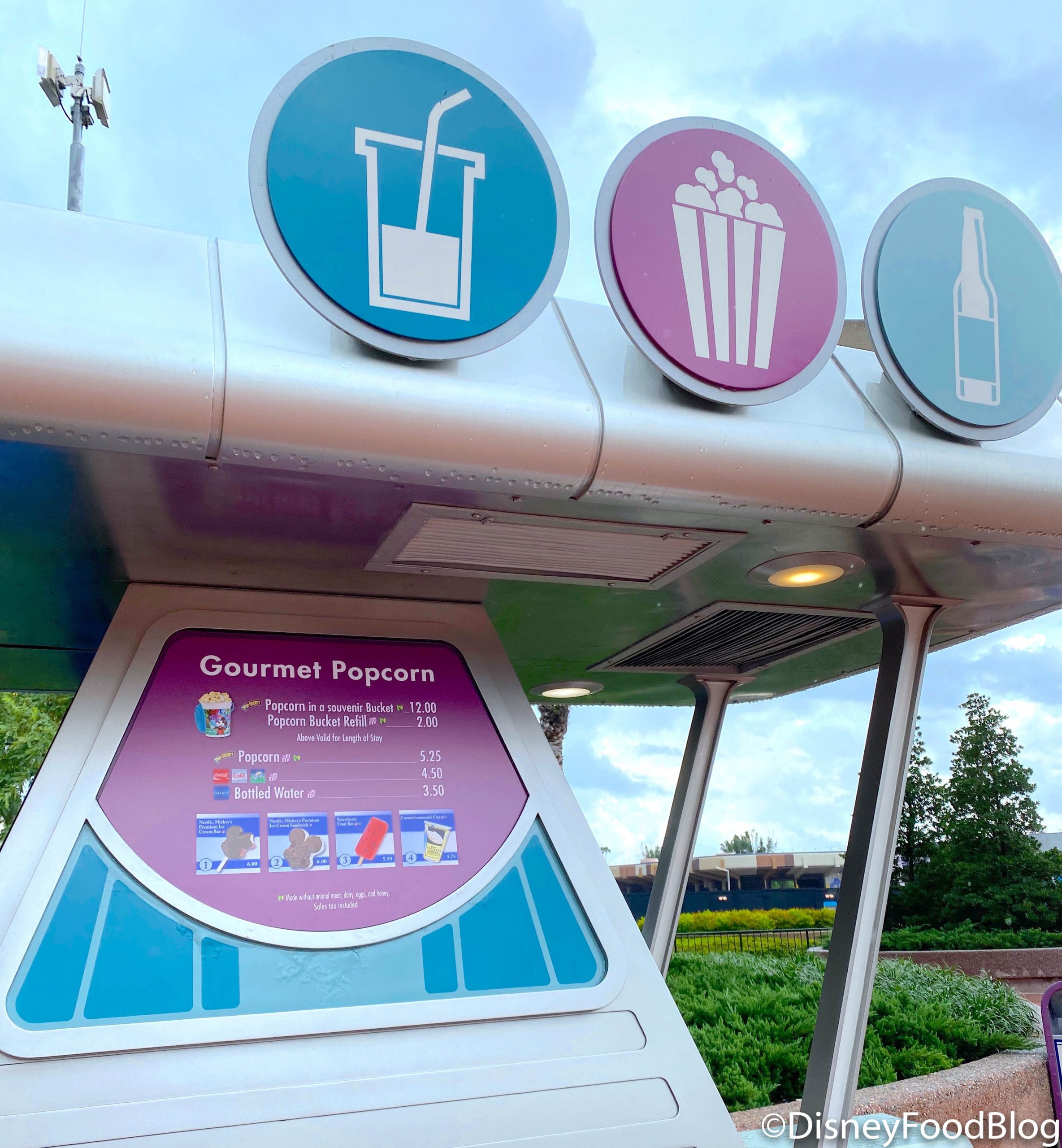 After sipping on something as cool as the Sparkling Dragon, you can also head over to the re-opened Gourmet Popcorn Cart near the Imagination Pavilion for somethin’ a little savory or sweet with popcorn and ice cream!