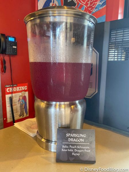 Currently, the seasonal cocktail you can pick up is the Sparkling Dragon, which is sake, peach schnapps, sour mix, and dragon fruit syrup.