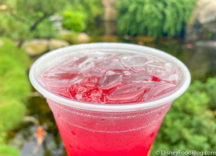 That drink is a seasonal one at Garden House at the Japan Pavilion. And check it out — it’s called the Sparkling Dragon! It’s sake, peach Schnapps, sour mix, and dragon fruit syrup. Yes, please!