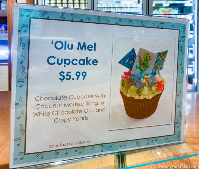 A couple of notes for you, though! While the ‘Olu Mel event is taking place at Disney’s Polynesian Village Resort TODAY, we’re not sure how long this little guy will be swimmin’ around Captain Cook’s cupcake case, so if you see one in the refrigerated case, grab it! And here’s an extra tip: We did NOT see the ‘Olu Mel Cupcake listed on Mobile Order. Sooo… we simply placed our Mobile Order for the Aloha Cupcake — which is still available — and asked that it be switched for the ‘Olu Mel, and it was no problem, since both are the same price of $5.99.