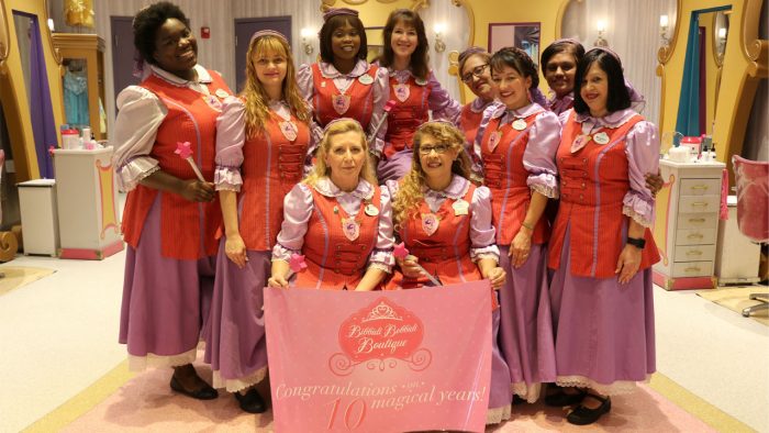 Their costumes are also super unique and different from other “retail” locations. The bright pinks, blues, and purples match the vibe of Bibbidi Bobbidi Boutique and truly pop in the best of ways!