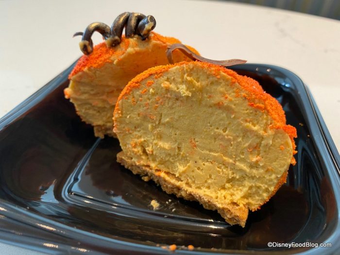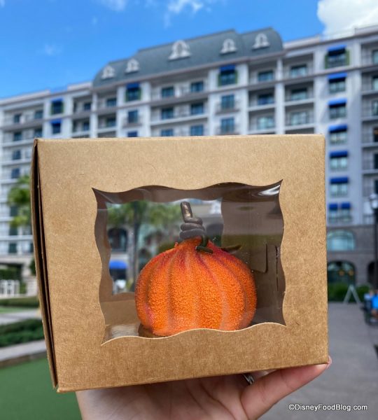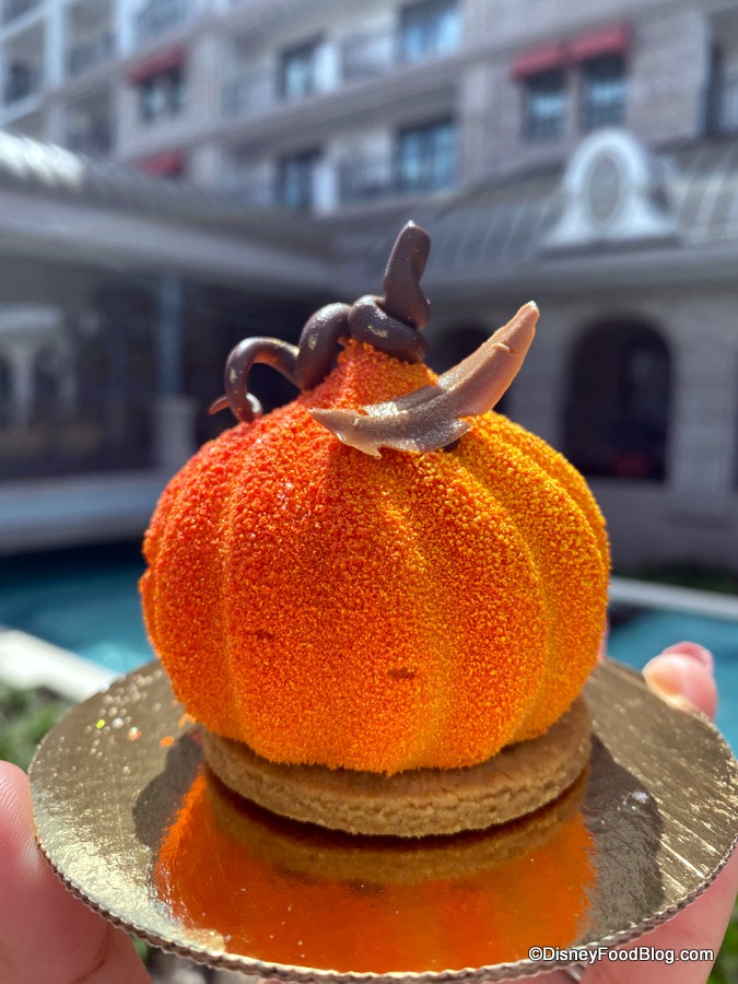 And yet, we’re STILL finding lovely little surprises as even more festive treats continue to hit the scene. And that’s certainly true of the newly arrived Pumpkin Mousse at Disney’s Riviera Resort, which is like a little work of art AND a dessert all in one!