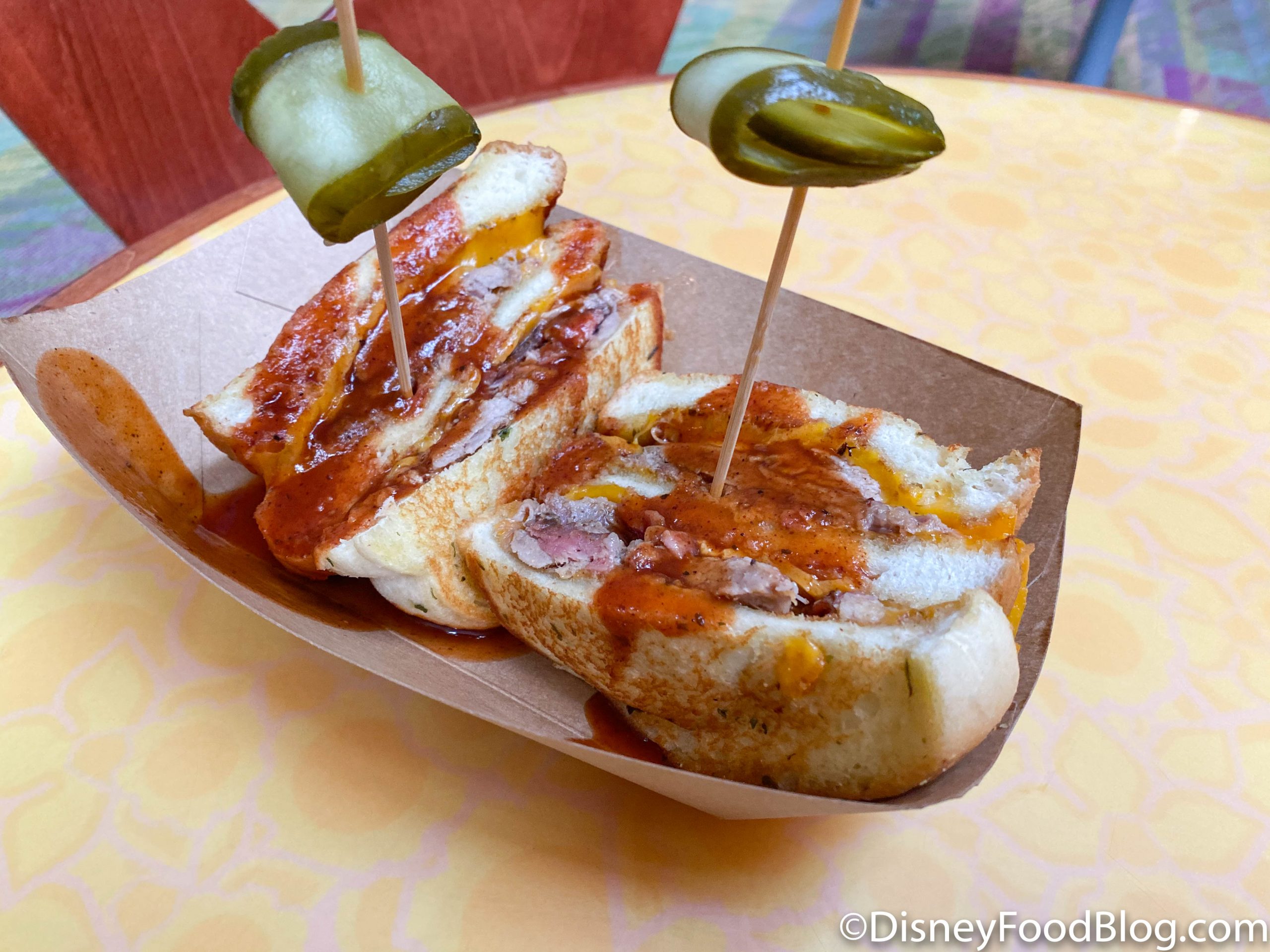 Did EPCOT need another barbecue meat sandwich (see: Regal Eagle Smokehouse: Craft Drafts & Barbecue)? Maybe not. But, are we upset that this wonderful pulled pork sandwich now exists? No way! We think Regal Eagle’s barbecue sandwich may be just slightly better simply because you can choose your own sauces there and we like the ability to make our food a little bit more customized to our taste preferences. And, obviously, the sides at Regal Eagle are better than a bag of Lay’s chips (no hate to Lay’s, just speaking the truth).