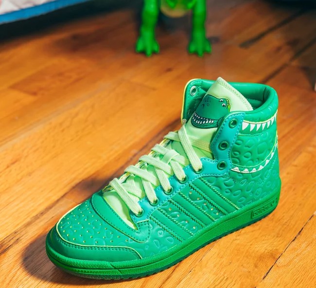 Do you tend to be more of a frightened dino kinda kid? Then you might want to snag these monstrous Adidas Rex x Top Ten Hi Shoes. We love that Rex is featured on the tongue of the shoe!