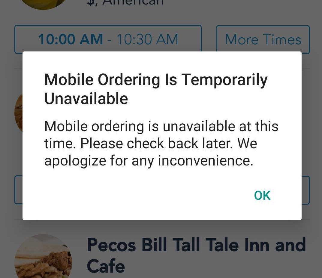 Technical difficulties happen in theme parks pretty frequently, whether it’s an attraction or an online feature. But, we saw THREE problems happen in one day when we were visiting Disney World this week. On top of shopDisney’s website going down and Disney Gift Cards being unavailable to use, the Mobile Order system in the parks experienced some issues while we were there.