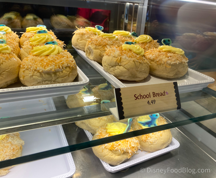 But we’re sure you’re wondering about the star of Kringla Bakeri Og Kafe, and yes, IT’S THERE. The School Bread has returned home! We recently discovered School Bread at the cart outside the Norway Pavilion, but now it’s back where it belongs. However, a Cast Member did tell us we will still be able to find it at the cart occasionally. It costs $4.49.