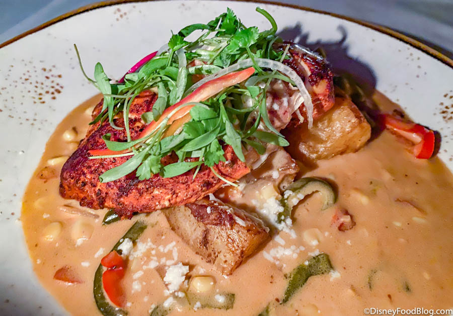In all of our years dining at San Angel Inn one thing has remained consistent: the atmosphere is the BOMB. It’s romantic, dark, and striking. If you’re on the fence about dining here, the theming is a pretty solid reason to give it a shot. The restaurant is notably more enjoyable since reopening due to the tables being spaced out. They were uncomfortably tight before! The food is unique, so we highly recommend scoping out the menu before you book that dining reservation to ensure you find something you’ll enjoy. We enjoyed our meal — we’re rarely ones to say no to melty cheese in Disney World and our chicken was tasty, particularly the sauce! Are these foods worth rushing back to San Agnel Inn to have again? Not really, but we still left satisfied! And you know we hopped on Gran Fiesta Tour as soon as we left. It’s basically mandatory if you eat here! 🙂