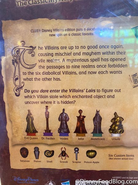We’ve seen lots of Disney Villains merchandise lately, but during our last trip we spotted another fun piece of villains merch that you can get the whole family involved in — the Disney Villains Clue Board Game.