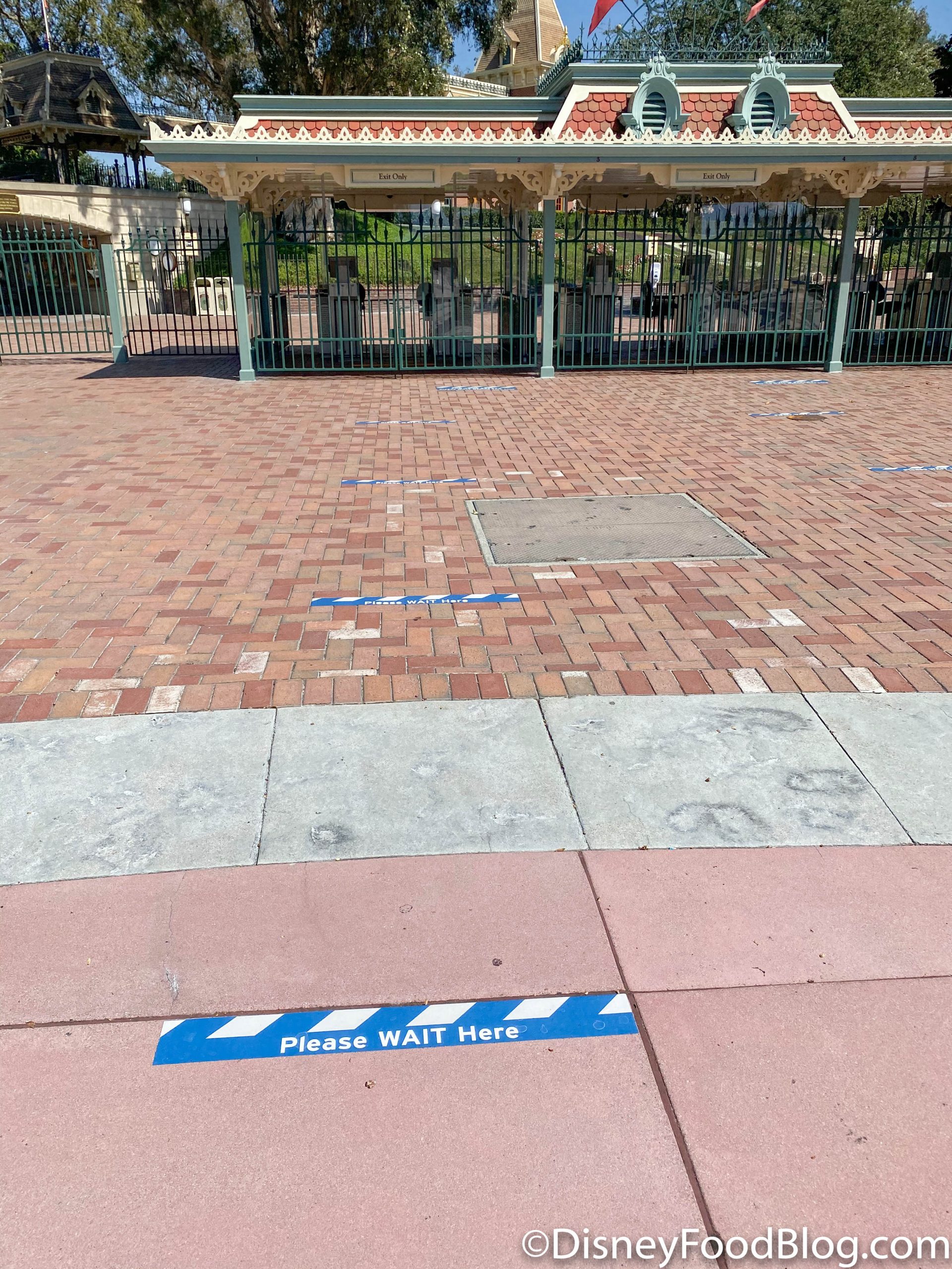 As we walked around the Esplanade, we spotted a couple more social distancing markers outside of the gates to Disneyland Park. We had spotted some previously over on the right hand side, but the new ones we spotted during our most recent trip were over on the far left side of the gates.