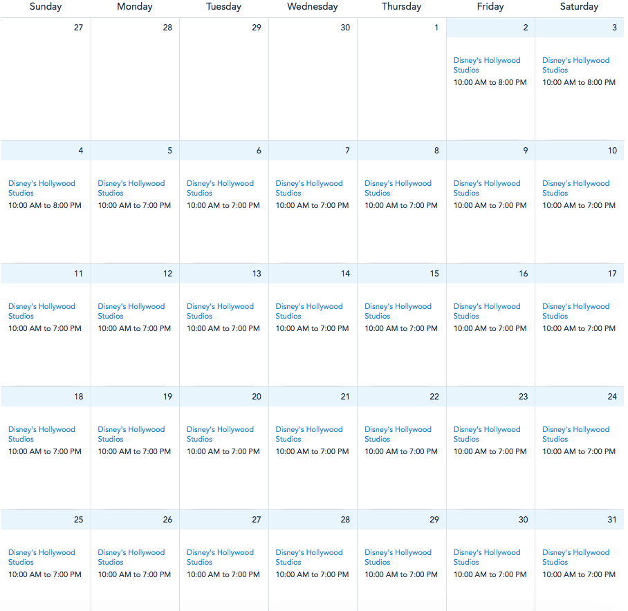 At Disney’s Hollywood Studios, there appears to be no change. While the hours have been extended slightly from October 2nd through the 4th, there do not appear to be any further extensions through any of the weekends in October. Instead, it appears the park will continue to operate at its current hours of 10AM to 7PM. We’ll keep an eye on this to see if it changes in the future.