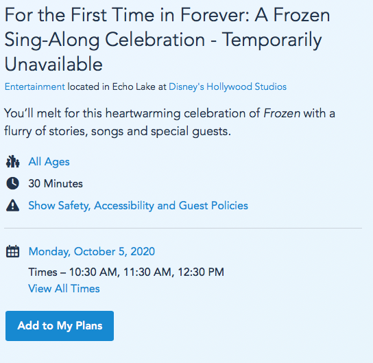 So, whether you’re a HUGE Frozen fan, or you’re just in the mood for a few laughs (those historians really are hilarious!), you can now head over to Disney’s Hollywood Studios to watch the Frozen show once again! We’re on the lookout for more news about other shows that have still not reopened in Disney World, like Finding Nemo: The Musical and Festival of the Lion King. We’ll let you know as soon as we spot any updates on those.