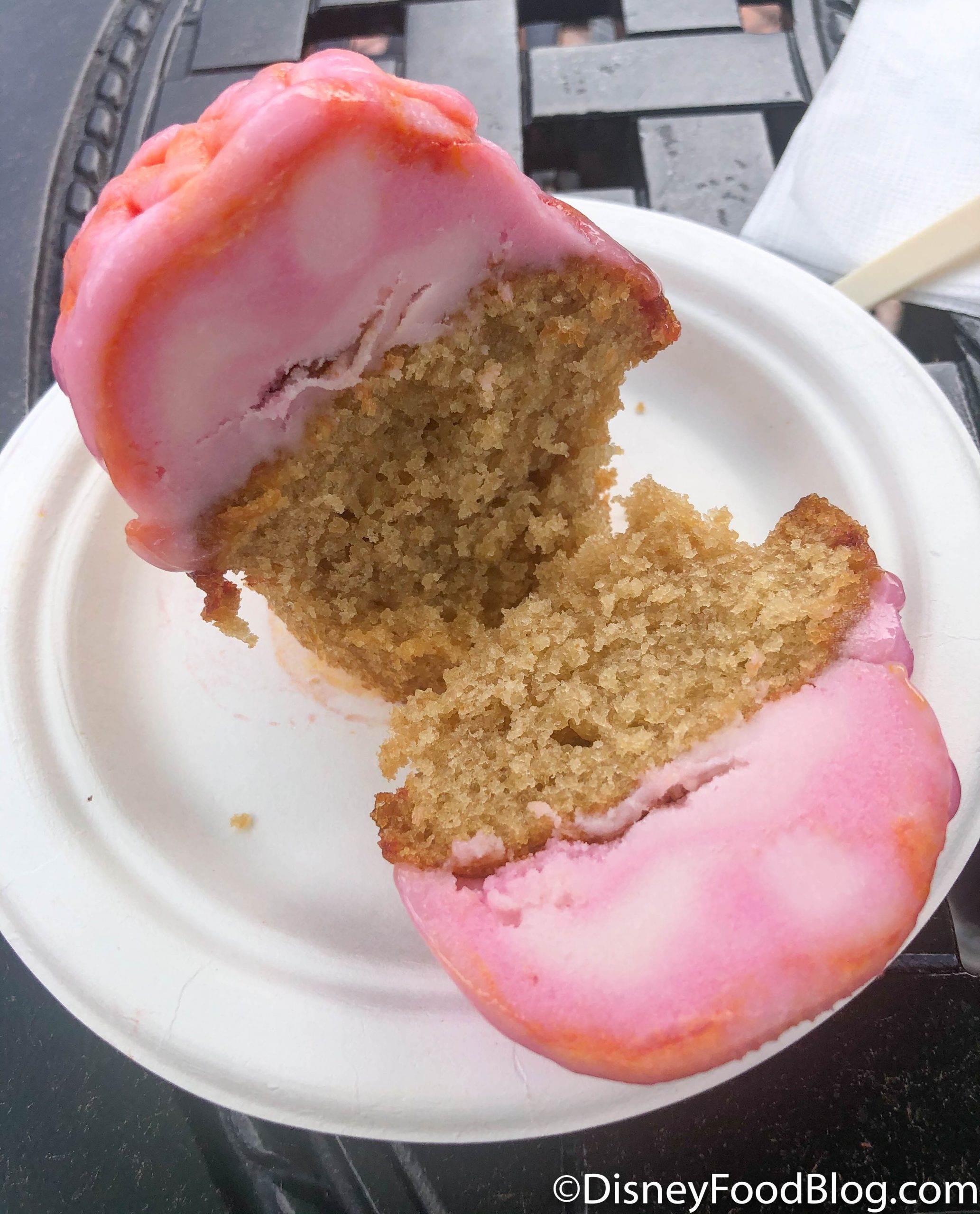 After we admired this spooktacular treat from the outside, we had to do a little brain surgery to see what was going on inside. Like we said, there’s a TON of frosting on top to form the brain shape, but if you’re a frosting > cake type of person, then you will probably LOVE this.