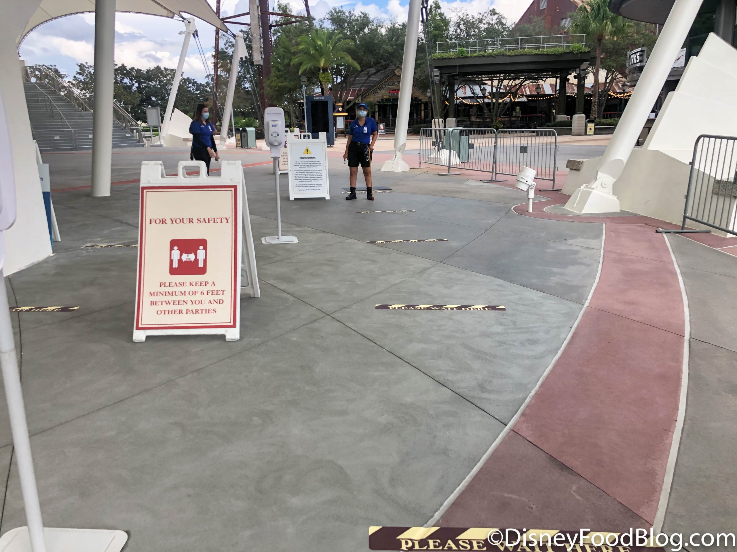 The temperature check for this entrance to Disney Springs is over by the Cirque du Soleil building. When we visited, the employee took our temperature on the forehead as well as behind the ear. It appears the employee did so just in case our head got hot from being in the sun.