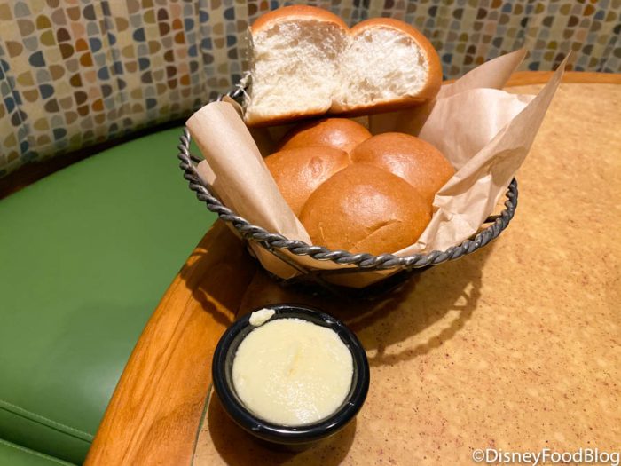 Soft rolls and butter are brought out to the table first. That butter? Yea, it’s the star of the show here. It’s an orange blossom honey butter and the bread is really just an excuse to cram as much of this butter in your mouth as possible. Ours was a bit on the softer side, but it’s seriously good stuff.
