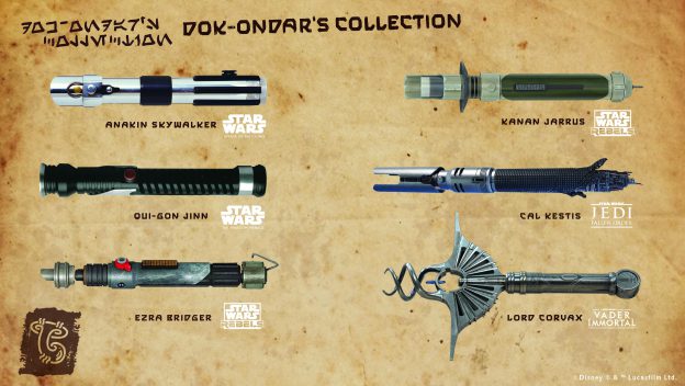 Ahsoka Tano’s hilts and blades from Star Wars: The Clone Wars will also be joining Dok-Ondar’s collection later this fall.