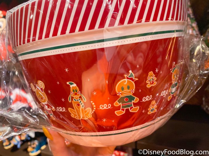 Before we get to what this set includes, can we just talk about how cute the designs are on the bowl?! It’s got gingerbread versions of our favorite characters including Minnie, Pluto, Donald, and more!
