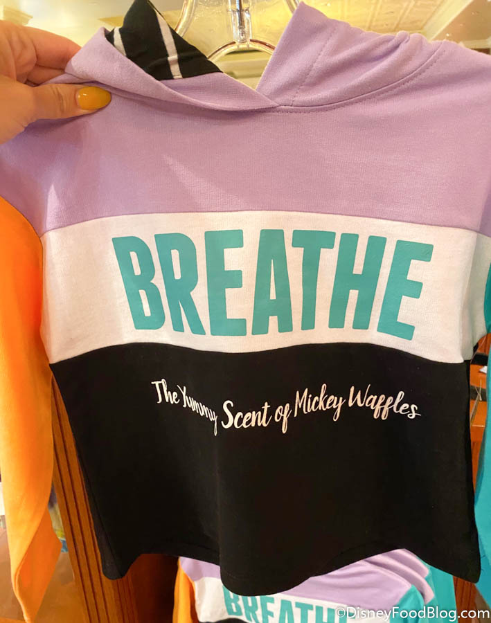 We also spotted this trendy Youth Hoodie that says “Breathe The Yummy Scent of Mickey Waffles” for $39.99. We’re not sure that’s grammatically correct, but we do love the scent of Mickey Waffles so we’ll take it.