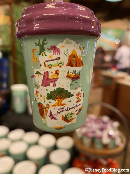 With all of the new holiday merchandise Disney is releasing in parks and online, we were on the lookout for some holiday merchandise on our visit! In Discovery Trading Company, we found the brand new Animal Kingdom Starbucks Travel Mug and Ornament!