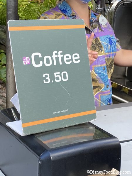 …but when we came back later in the day the sign was gone. If you don’t want to wait in a line at Starbucks, this is a great way to grab coffee quickly. The cart sells a cup of coffee for $3.50.