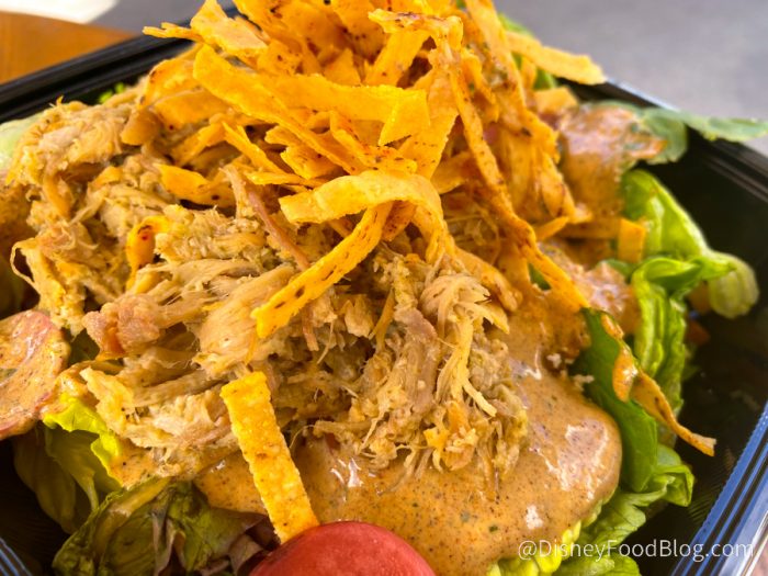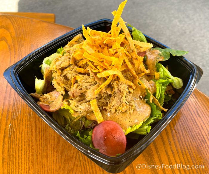 The chef here told us this is a brand new salad, although it’s based on the previous Fairfax Salad at Fairfax Fare. And y’all, this salad was yummy! It can be so hard to find a good salad at theme parks, but this one was almost perfect. We loved how the chips added a bit of crunch. The ingredients were super fresh. And the pork is super flavorful and the ranch gives it all a nice slight kick. It costs $10.99.