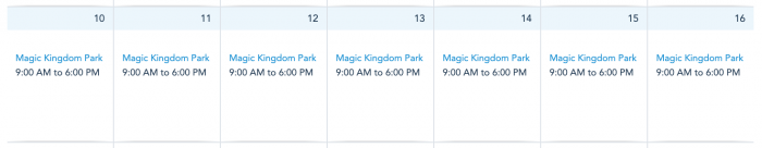 And finally, Disney’s Animal Kingdom will have the same operating hours as the week prior, open daily from 9AM-5PM.