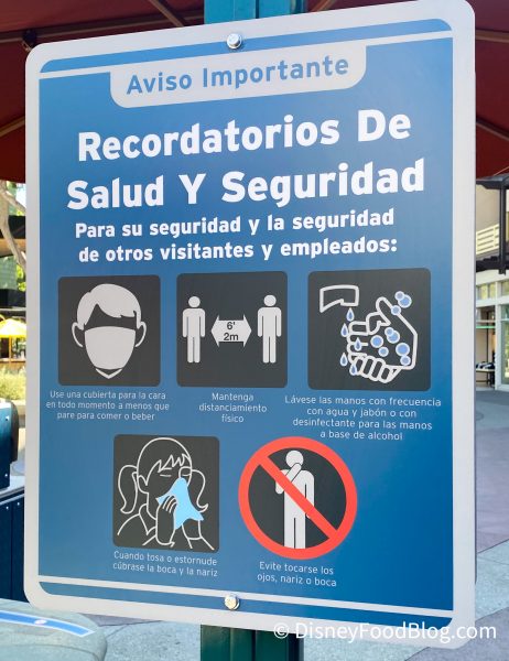 Speaking of new signage, the health and safety signs that we have seen throughout Downtown Disney now have Spanish versions. This is one of the updates that was suggested to Disneyland by county health officials.