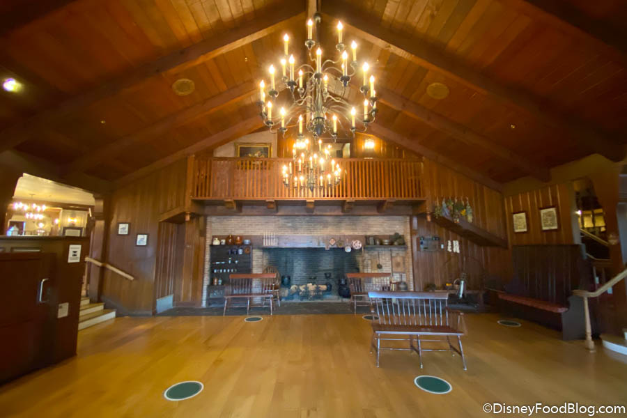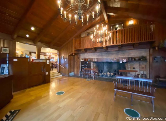 Like most dining locations around Disney World, the atmosphere has changes some to reflect the recent additions of physical distancing guidelines. This was super apparent in the waiting room where benches have been spaced and stickers have been placed to mark waiting zones.