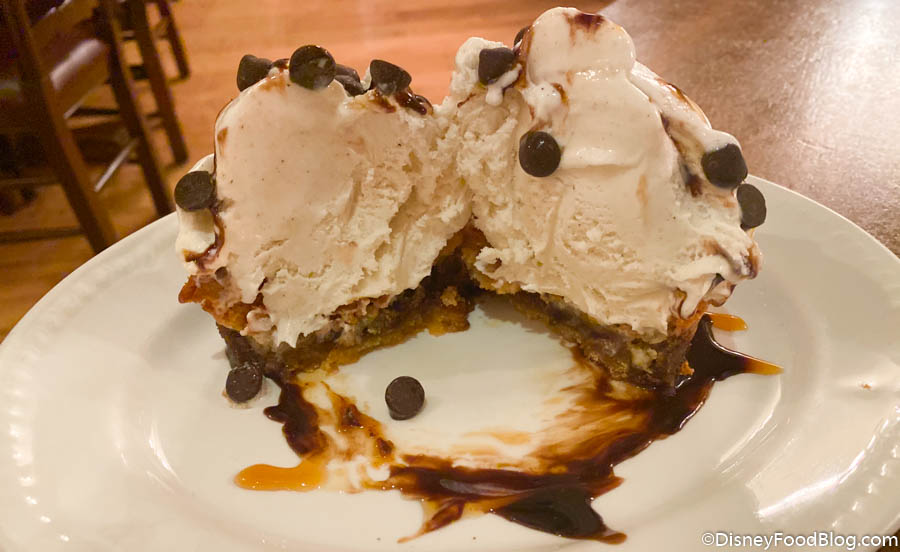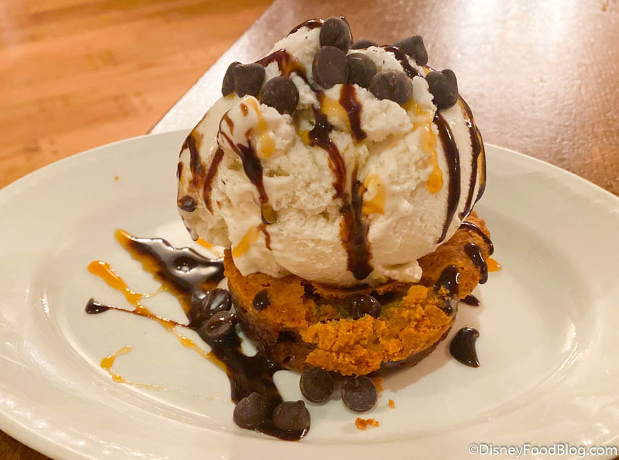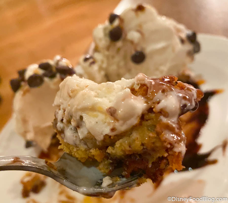 If you’re not familiar with this stunner of a Disney dessert, you might be thinking this doesn’t look like all that much. What’s the big deal? Guys, it’s so…so…good. The cake is a similar to a blondie in texture but warm with pockets of gooey chocolate and toffee. The chocolate chunks in this dessert are HUGE and the cake almost tastes like a cookie that wasn’t quite cooked long enough. Combine that with a big, cold scoop of ice cream and you get that perfect hot/cold mixture in each scoop. We love that!