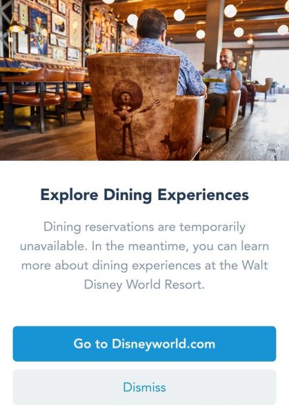We’re not too sure about what’s going on with the dining reservations this morning, but stay tuned to DFB as we learn more. And if you’re having a similar experience, please let us know.