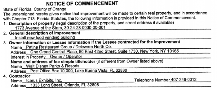 The permit is also filed with Icarus Exhibits who tend to do some theming work for Disney World which would track with this being a permanent, in-theme installation.