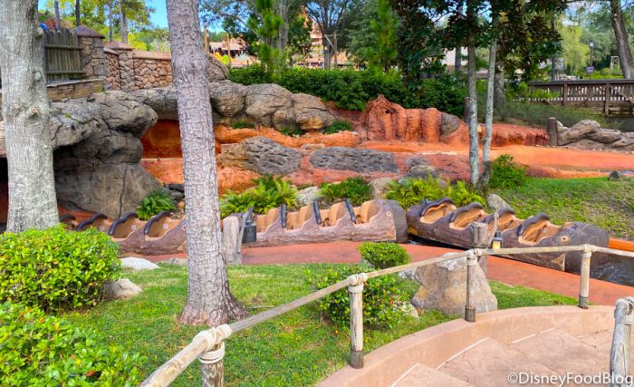 We were strolling through Frontierland when we noticed a familiar sight. What’s this? Is it all of the Splash Mountain boats piled up at the end of the attraction? You bet it is!