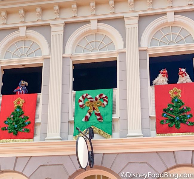 But today, as we walked around Magic Kingdom, we found that the Muppets have made their way BACK to Liberty Square! They’re not doing a full show, however. Instead, they’re just making some limited appearances in the open windows (but hey, we’ll take whatever Muppets fun we can take). When we were there, we saw Gonzo and some of his favorite chickens dancing around with some jingle bells and spreading lots of holiday cheer! It’s the perfect chance to take a socially distanced and festive selfie with these awesome characters.