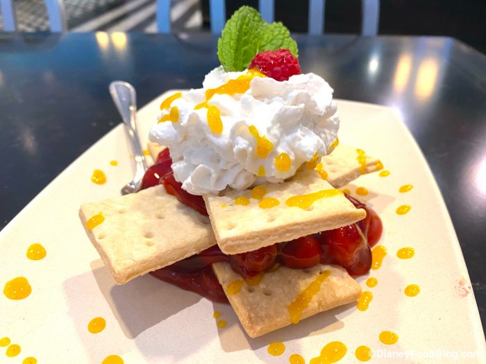 And for dessert, we opted for the Plant-Based Cherry Lemon Pie, which is a deconstructed pie made with cherries and a lemon drizzle.