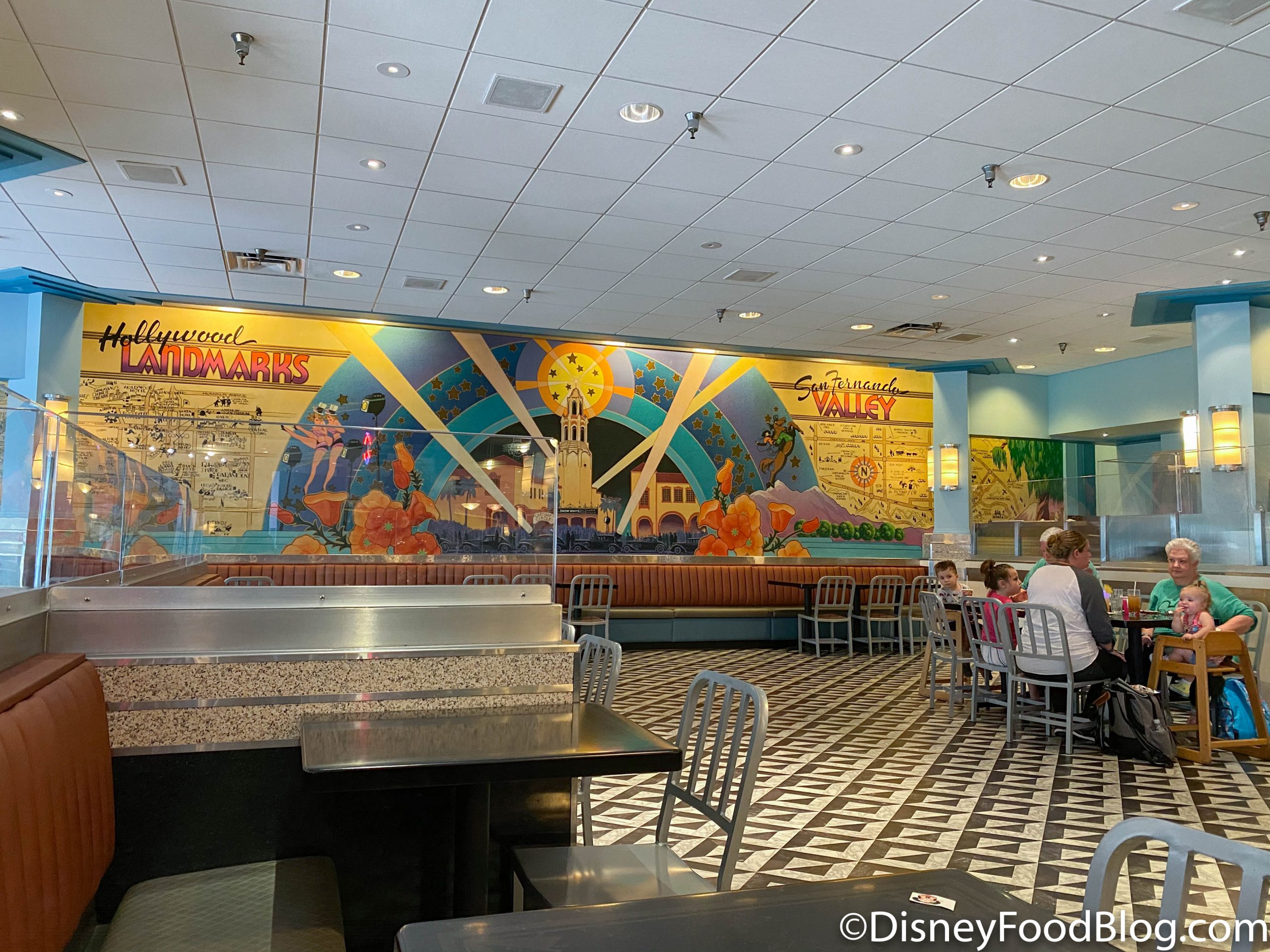 Just like the last time we dined at Hollywood & Vine, the restaurant is adhering to the health and safety guidelines being practiced around Disney World. Safety measures include plexiglass dividers throughout the restaurant, increased hand santizer availability, and guests are encouraged to check-in via Mobile Dine Check-In on the My Disney Experience app, as opposed to in-person.