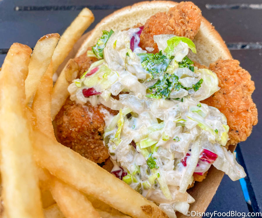 The chicken was nice and crispy and it did have an actual kick of spice, which can be hard to find in Disney food! So, if you’re really not into spicy food, this sandwich might not be for you!