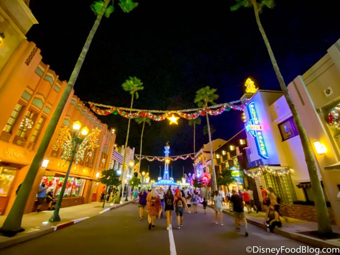 We spent the whole day exploring Disney’s Hollywood Studios during the start of the Christmas season! But, we just couldn’t seem to stay away because we’re back again today to enjoy the atmosphere and maybe eat a holiday treat or two while we’re here.