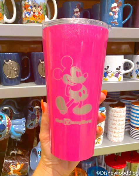 While we’ve previously spotted different Mickey Corkcicles online, in this one, Mickey is getting a pop of pink with the sparkly version of a tumbler…