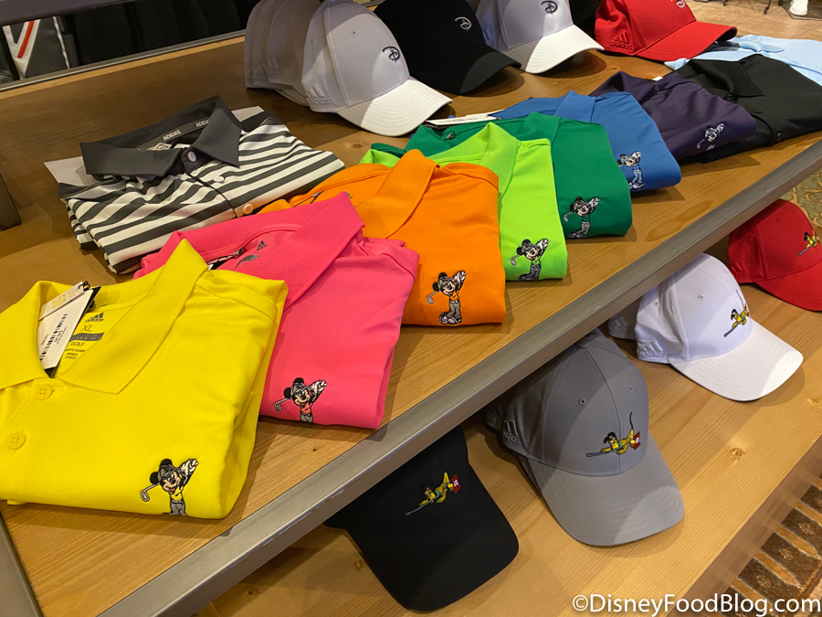 Let’s take a look at what’s in stock! We saw many golf polos featuring the new and returning characters! Most notably, a lot of polo shirts. The Adidas Mickey Mouse polos came in a variety of fun colors for $49.95.