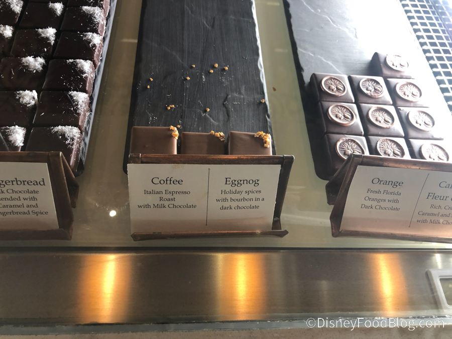 - Eggnog Ganache Square – Creamy bourbon eggnog covered in dark chocolate