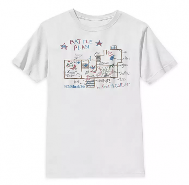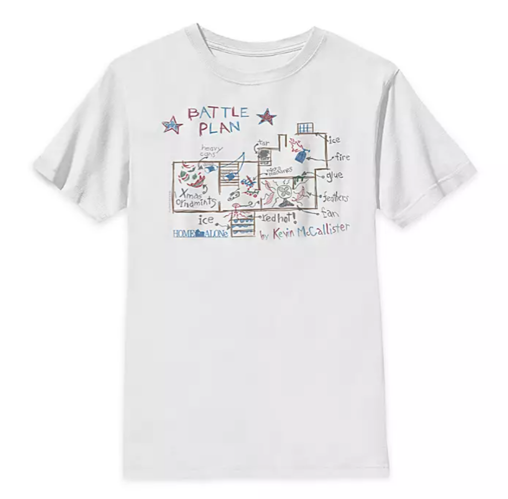 If you’ve ever wondered about the specifics of the Battle Plan Kevin made to face off against the Wet Bandits, you can now see it completely laid out on a t-shirt! We love the hand-drawn details on this shirt!