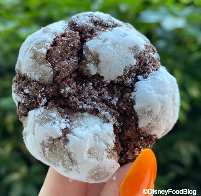Chocolate lovers, this cookie is FOR YOU! These cookies are verrrry heavy on the cocoa flavor, not that we’re complaining! ‘Tis the season of cocoa, after all! If you don’t like chocolate, well, there are plenty of OTHER cookies to try at Disney World this season.
