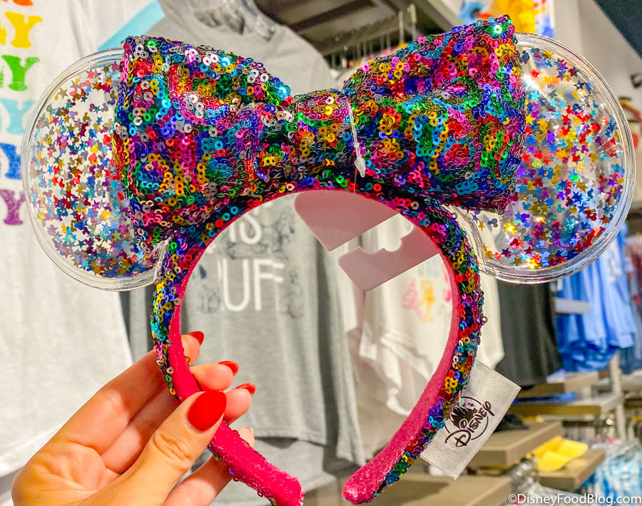 Plus, you can pair it with the adorable redesigned Minnie Ears with a giant red and white polka dot bow, red headband lining, and LOTS of sequins.
