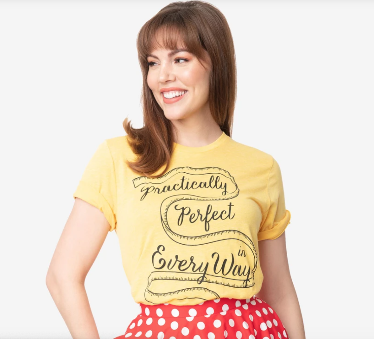 So, let her know just how wonderful you think she is with the Unique Vintage Practically Perfect Shirt, inspired by Mary Poppins for $28.