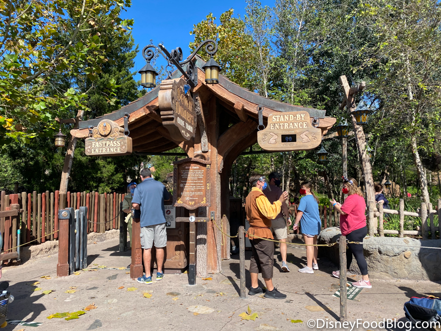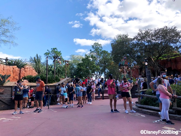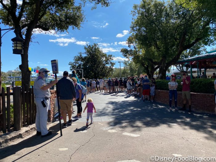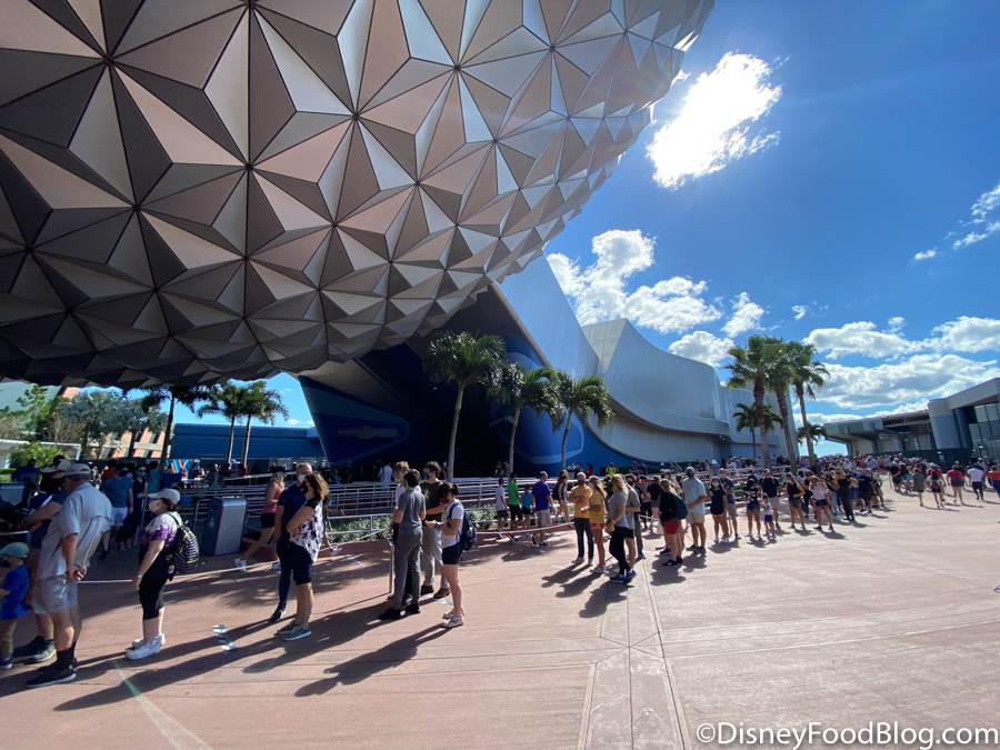It should also be noted that due to the varying ride capacities (adjusted by physical distancing), some rides can board more passengers than others. This can cut down on wait times considerably. The queue for Spaceship Earth extended outside the attraction and alongside the building.