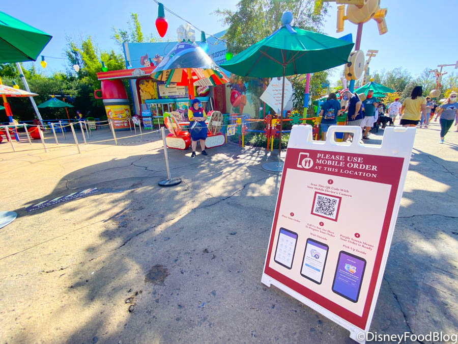 Woody’s Lunch Box is looking as cute as ever with oversized theming to make you feel like a real-life toy. Like most other quick-service restaurants in Disney World right now, Mobile Order is heavily encouraged. Once your order is ready, a Cast Member will direct you up to the counter.