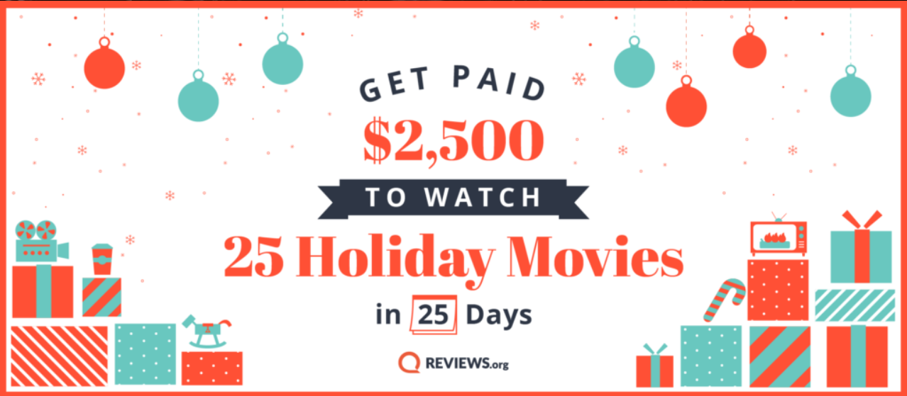 Reviews.org, a website that reviews consumer products for the home, is looking for someone special to hire as their Chief Holiday Cheermeister! This person will watch 25 holiday movies in 25 days and share their thoughts via short survey.
